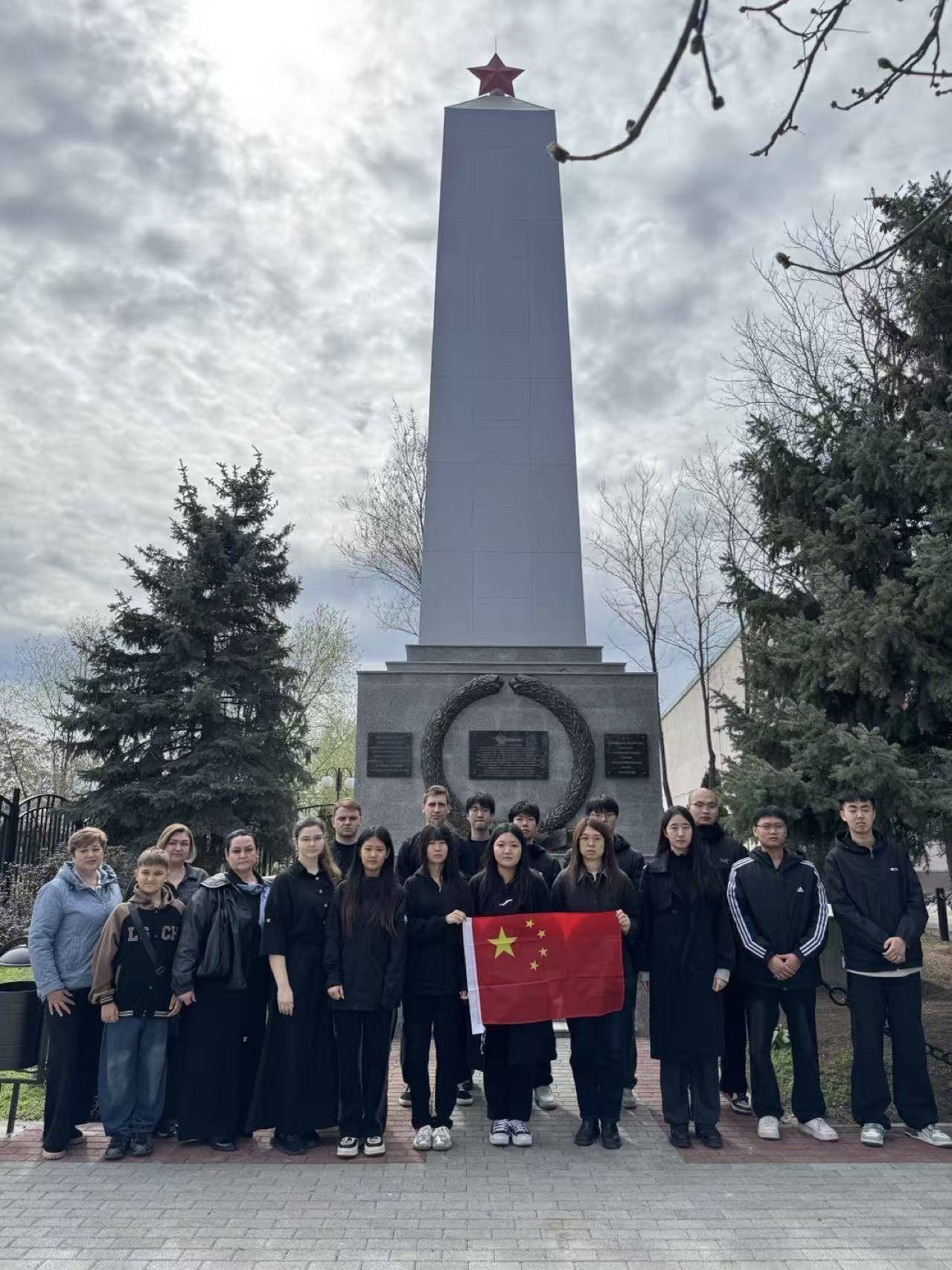 清明节前夕,山东交通学院欧美同学会俄白联络站成员与顿河留俄学生会学生代表,前往俄罗斯罗斯托夫州莫罗佐夫斯克市,祭扫中国烈士纪念碑,缅怀为保卫苏维埃政权而牺牲的中国籍红军烈士。